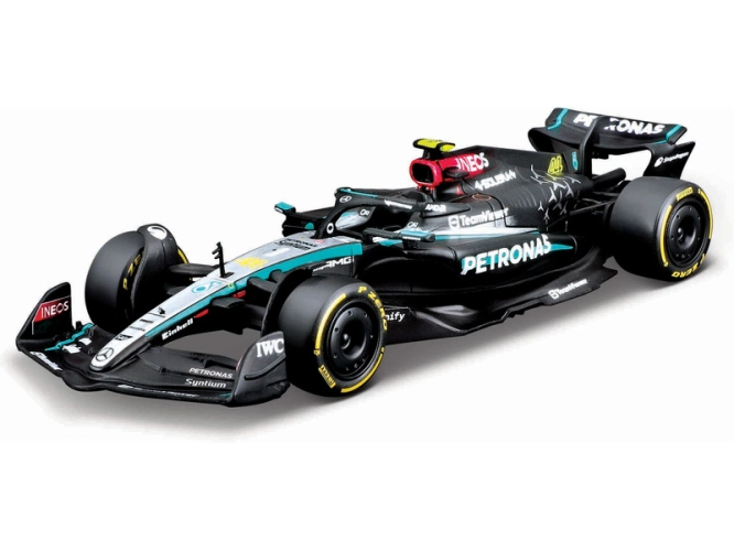 Kovový model Bburago Mercedes-AMG F1 W15 nejen pro sběratele, v měřítku 1:43. Detailní provedení, přívětivá cena, pilot #44 Hamilton, približná délka 10cm.