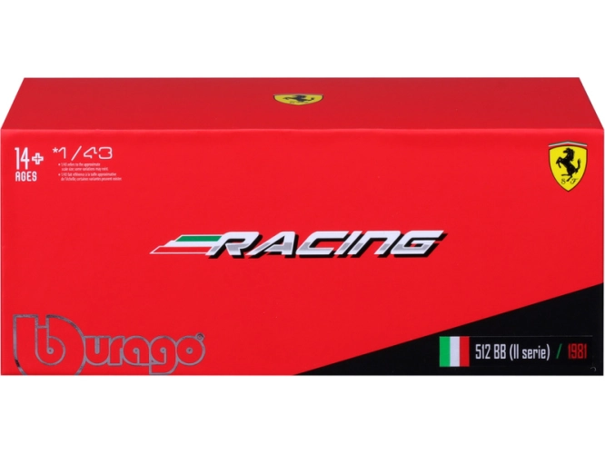 Kovový model auta Bburaga Signature 18-36308 Ferrari 512 BB II 1981 s číslem 45 v měřítku 1:43 je dodáván v průhledné plastikové krabičce. Barva modelu je červená v detailním provedení.