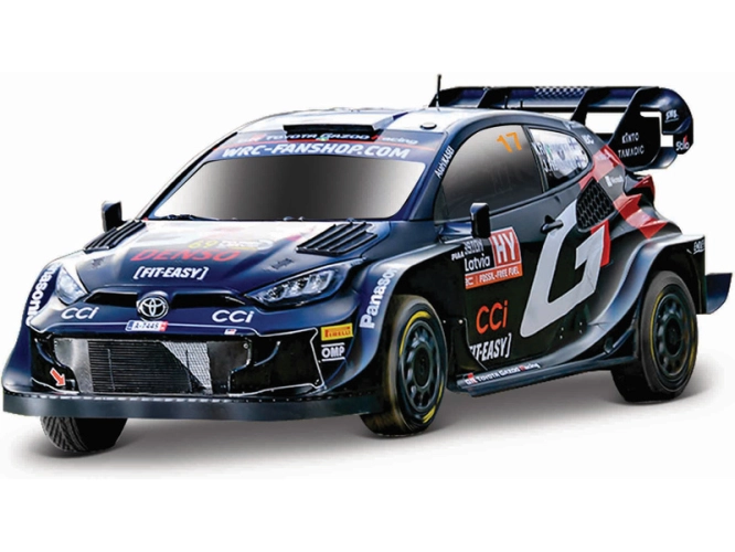 Toyota GR Yaris Rally1 Hybrid s číslem 17 je soutěžní vůz týmu Toyota Gazoo Racing WRT, který řídí Sébastien Ogier se spolujezdcem Vincentem Landaisem. Patří do nejvyšší kategorie Rally1 světového šampionátu WRC a kombinuje moderní hybridní technologii s klasickým přeplňovaným motorem. Pohon zajišťuje 1,6litrový přeplňovaný čtyřválec s přímým vstřikováním, doplněný o hybridní systém o výkonu až 100 kW, který poskytuje krátkodobý elektrický boost při akceleraci. Celkový výkon dosahuje přibližně 500 koní. Vůz má trvalý pohon všech kol, pětistupňovou sekvenční převodovku a váží okolo 1 260 kg. Podvozek je konstruován speciálně pro náročné rally podmínky – využívá prostorový rám, ochrannou klec a robustní zavěšení kol. Aerodynamické prvky karoserie, vycházející z civilního modelu GR Yaris, zajišťují přítlak a stabilitu na šotolině, asfaltu i sněhu. Toyota GR Yaris Rally1 debutovala v roce 2022 a od té doby patří k nejúspěšnějším vozům WRC. Sébastien Ogier s vozem číslo 17 získal několik vítězství, například na Rally Monte Carlo 2023 a 2024, čímž potvrdil svou roli jednoho z nejlepších jezdců historie rally. Tento vůz představuje špičku současné rally techniky – spojuje výkon, lehkost, spolehlivost a efektivní využití hybridní energie pro maximální soutěžní efektivitu.