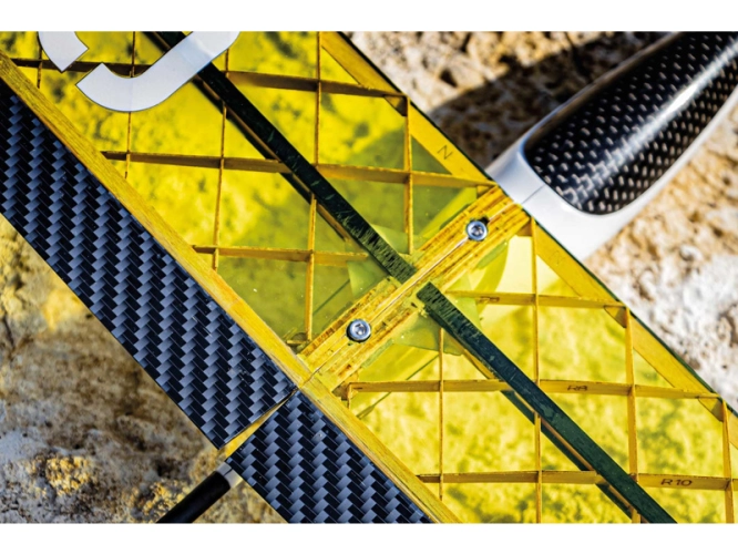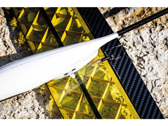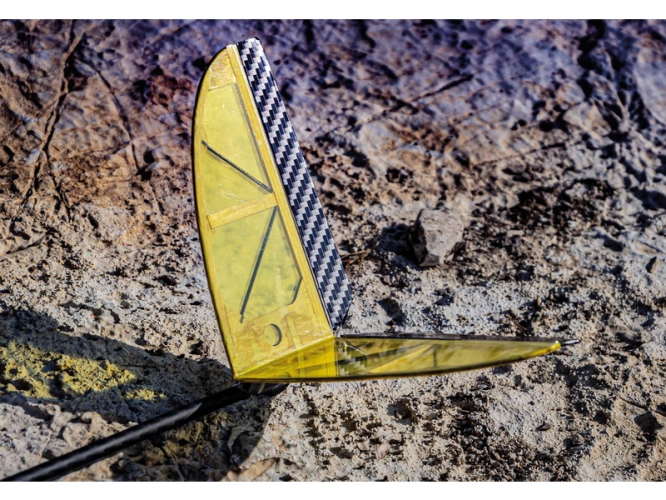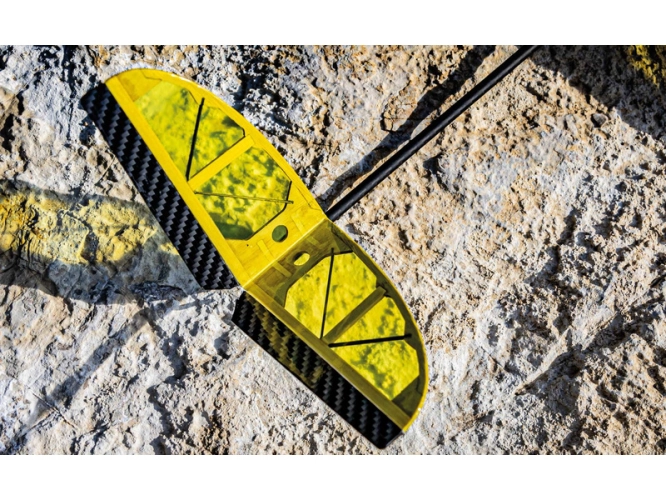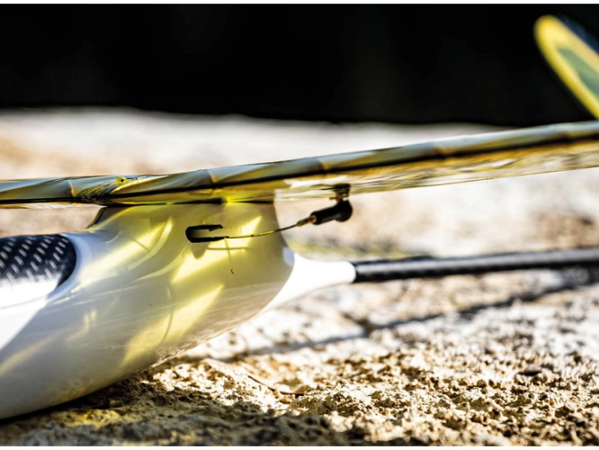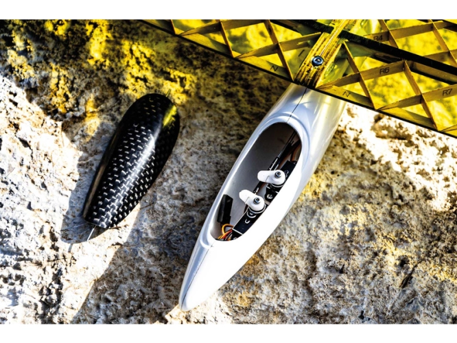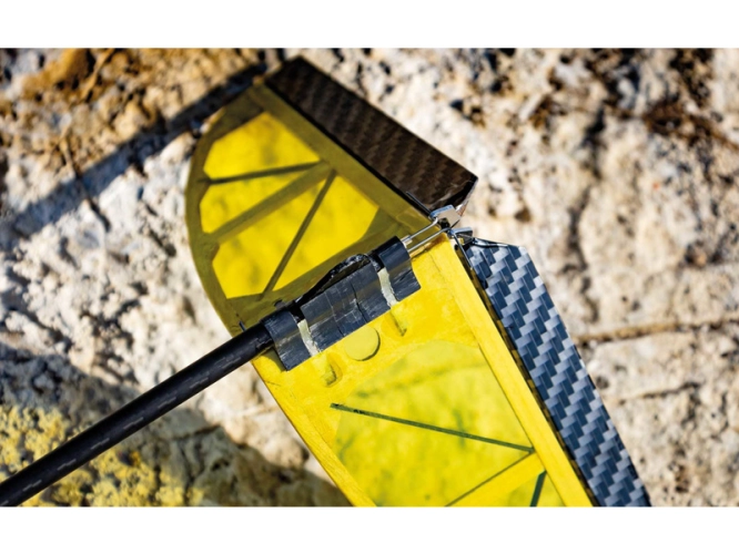 Konstrukce ocasních ploch je vyztužena uhlíkem, pokud máte vysílač disponující funkcí V-Tail, můžete mít kormidla ve funkci výškovky i směrovky. Tento model lze ale řídit i výškovkou a křidélky, proto vystačíte i s jednoduchou RC soupravou.
