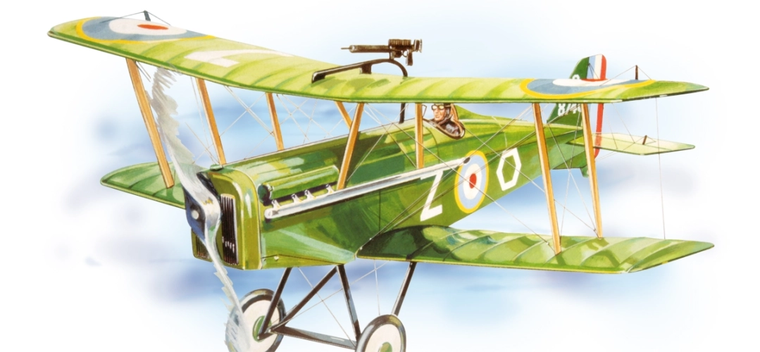 Stavebnice volně létající makety stíhacího dvojplošníku z I. světové války určená pro pohon gumovým svazkem, návod a plán umožňují model postavit také jako volně létající s pohonem spalovacím motorem 0,33ccm nebo jako detailně propracovaný statický model v muzejní kvalitě.