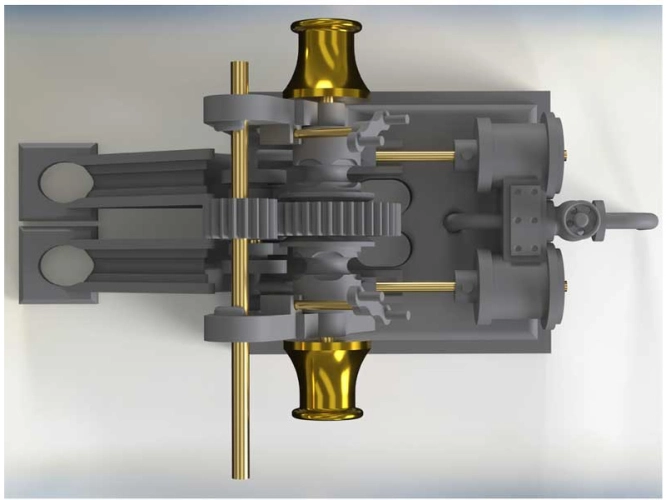Součásti mají výrazně realističtější vzhled a nabízejí jemnější a detailnější znázornění všech mechanických prvků. Přiložený montážní návod jasně popisuje montáž převodů, brzdových pák, vodítek řetězu a bubnů. Mosazné tyče různých průměrů slouží jako osy, které umožňují volné otáčení převodů v případě potřeby.