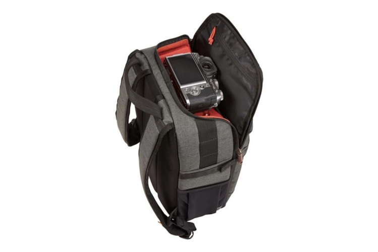 Snadný přístup k fotoaparátu nebo notebooku shora přes dvou jezdcový zip bez nutnosti otevírat celý batoh.