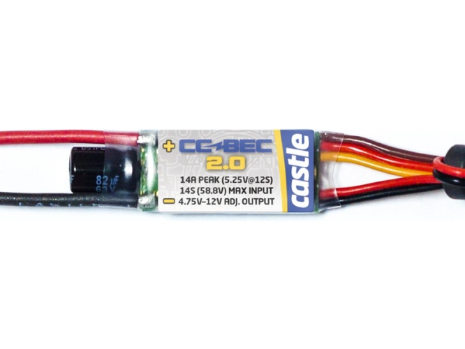 Programovatelný spínaný stabilizovaný zdroj BEC pro přijímač a serva je potřeba všude tam, kde se předpokládá vyšší odběr a větší počet serv . Napájení až 12 čl. LiPol, výstupní proud max.14A. Využití je tam kde regulátor nemá obvod BEC nebo není dostatečně výkonný pro napájení rychlých silných serv.