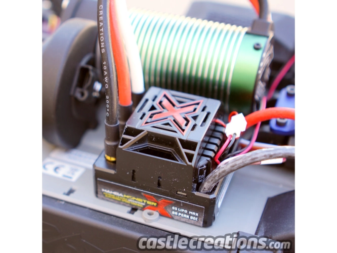 Špičkový elektronický regulátor otáček Castle Mamba Monster X je určen pro RC modely aut v měřítku 1:8. Samozřejmostí je voděodolná konstrukce, novinkou je možnost připojení senzorového motoru, doplňkový vstup pro změnu nastavení regulátoru během závodu, napájení až 2 až 6 čl LiPol. Regulátor je doporučen pro auta 1:8 až 1:10, do hmotnosti cca 7.5 kg.