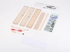Stavebnice obsahuje: balsové předseknuté díly, balsové nosníky, vakuově lisované díly (kryt motoru), čirou fólii na "zasklení" kabiny, plastovou vrtuli s hřídelí a hlavicí, gumový svazek, vysoustružená balsová kola, ocelovou strunu na podvozek a další drobné díly, potahový papír, aršík mokrých obtisků, stavební plán.