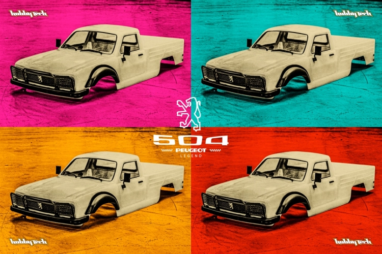 HOBBYTECH, francouzský designér a výrobce rádiem řízených podvozků/modelů, vám s hrdostí nabízí tuto reprodukci karoserie pick-upu 504 v licenci. V této krabici nabízíme několik doplňků (lemy blatníků, ochrana světlometů, polepy), které vám umožní reprodukovat verzi dle vašeho výběru.