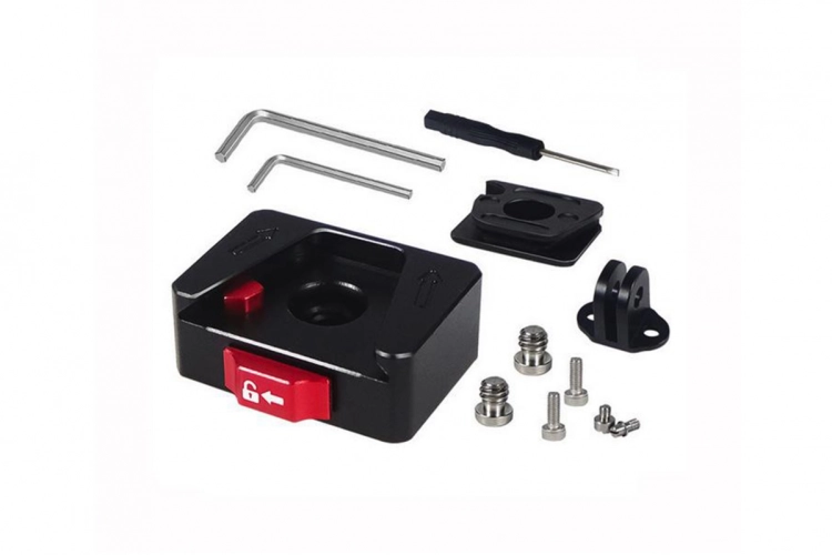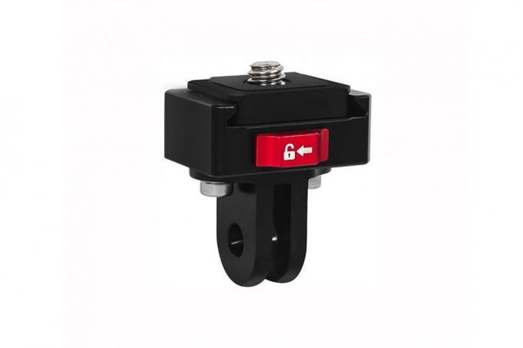 CNC rychloupínací adaptér se závitem 1/4" vyrobený z odolné hliníkové slitiny. Váží 25 g a má rozměry 30 × 24 × 33,5 mm. Disponuje 1/4" šroubem a otvorem pro 1/4" šroub. Adaptér pro GoPro je odnímatelný, což zajišťuje flexibilní použití s různým příslušenstvím. Ideální pro rychlé a bezpečné připevnění kamer a doplňků.