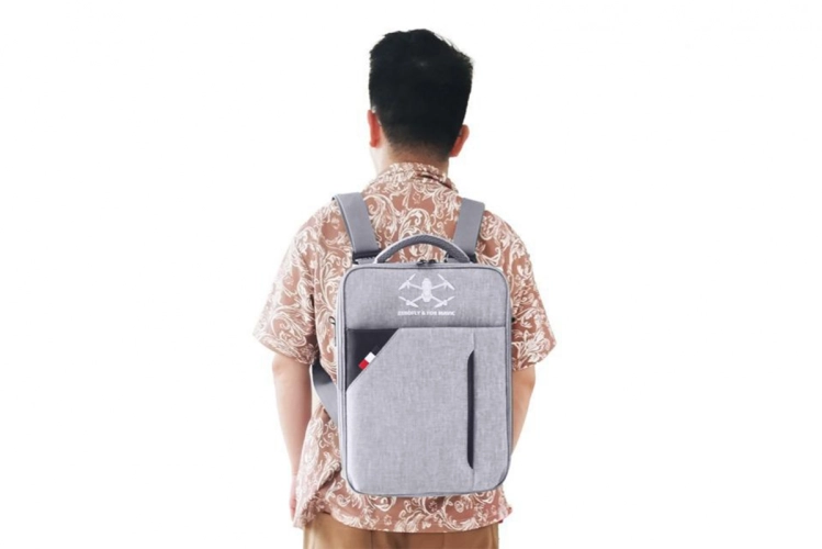 Šedý batoh / taška na přenášení pro DJI Mavic 4 Pro vyrobený z odolného nylonu a EPP materiálu. Váží 552 g a má rozměry 36 × 15 × 25 cm. Součástí je nastavitený ramenní popruh pro pohodlné nošení. Kompatibilní s ovladačem DJI RC 2. Ideální pro bezpečný a praktický transport vašeho dronu i příslušenství.
