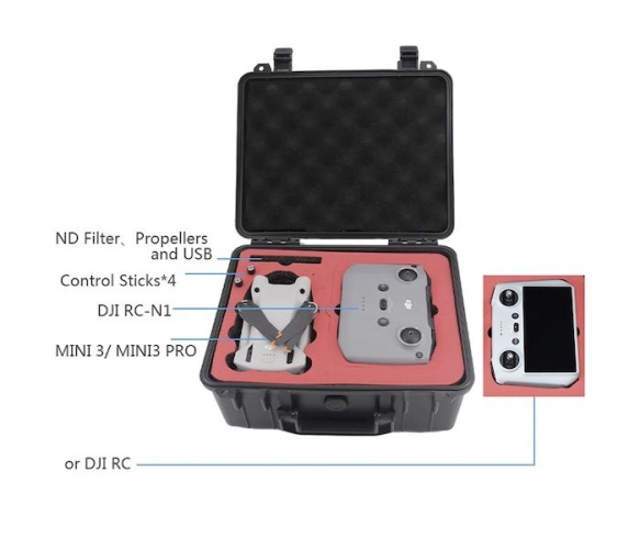 Mini voděodolný kufr pro DJI MINI 3 a MINI 3 Pro, váha 855 g, rozměry 28 × 23 × 12 cm. Kompatibilní s ovladači DJI RC a DJI RC-N1. Ideální ochrana pro vaše zařízení při cestování i náročných podmínkách. Robustní, praktický a spolehlivý.