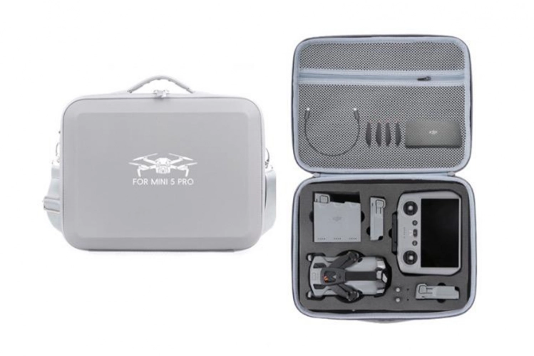 Elegantní šedá ramenní brašna pro DJI Mini 5 Pro kombinuje styl a praktické využití. Vyrobena z kvalitního PU materiálu a EVA pěny, poskytuje spolehlivou ochranu proti nárazům a poškození. S rozměry 35 x 27 x 9,5 cm a hmotností 670 g nabízí dostatek prostoru pro dron, ovladač i příslušenství. Díky nastavitelnému ramennímu popruhu je ideální na cestování. Brašna je kompatibilní s ovladači DJI RC 2 a RC-N3, a je tak skvělým řešením pro bezpečné a pohodlné přenášení.