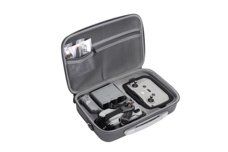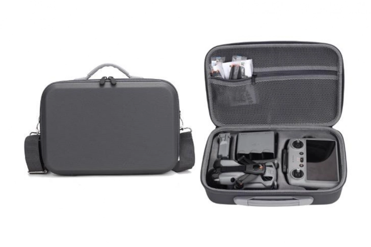 Velké pouzdro z PU kůže s ramenním popruhem pro DJI Mini 5 Pro je ideální pro bezpečné přenášení dronu i ovladače DJI RC 2 nebo RC-N3. Vyrobené z kvalitních materiálů PU a Lycra, poskytuje spolehlivou ochranu proti nárazům a poškrábání. Šedé pouzdro o rozměrech 33 × 23 × 9 cm a hmotnosti 700 g je lehké, elegantní a praktické pro cestování.