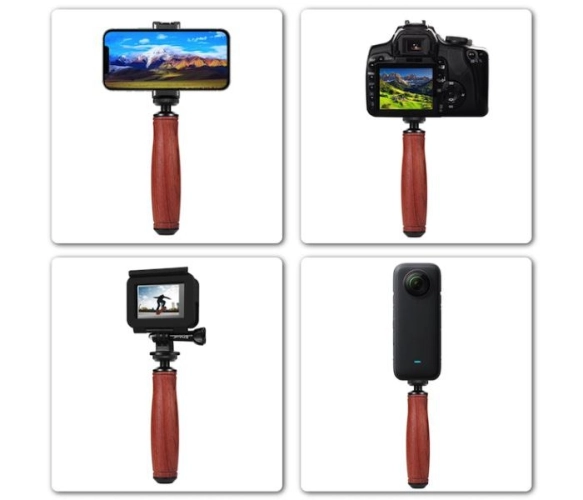 Dřevěné stabilizační držadlo pro akční kamery s délkou 13,5 cm a hmotností 79 g. Elegantní a přírodní design zajišťuje pevný a pohodlný úchop během natáčení. Vybaveno 1/4" šroubem a otvorem pro snadné připevnění kamery. Ideální pro stabilní a komfortní záběry na cestách i při sportovních aktivitách.