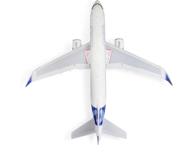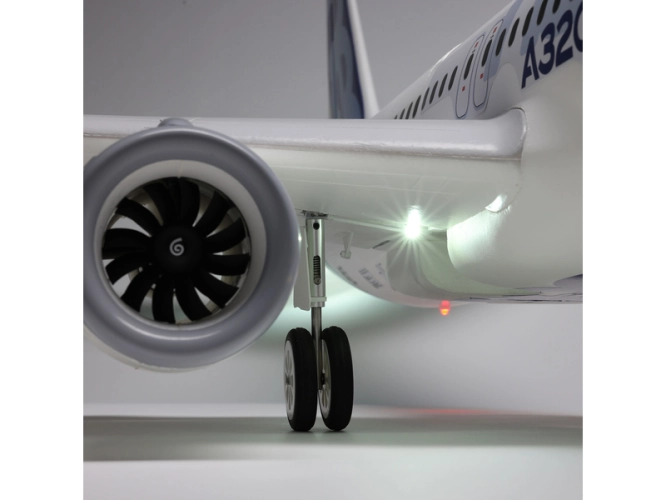 Lehký drak letadla z materiálu EPO vyztuženého kompozitem je dodáván s hotovou povrchovou úpravou a se speciálním schématem „neo“ od Airbusu. K montáži není potřeba žádné lepidlo, dvoudílné křídlo se jednoduše instaluje pro pohodlnou přepravu v autě. Osm digitálních serv je spojeno s kormidly přes táhla s kulovými čepy pro přesné a spolehlivé ovládání při všech rychlostech. Mezi funkční prvky patří LED navigační, stroboskopická a přistávací světla, vztlakové klapky a elektrické zatahování podvozku, který je navíc vybaven tlumiči a velkými koly, takže můžete vzlétat a přistávat nejen z tvrdých rovných povrchů, ale i z travnatých ploch. To vše dohromady vytváří model ikony civilního letectví, který si budete užívat let za letem!