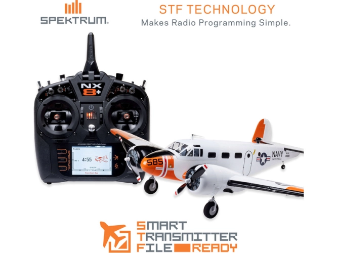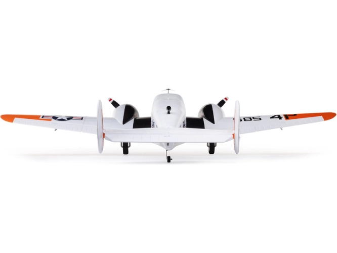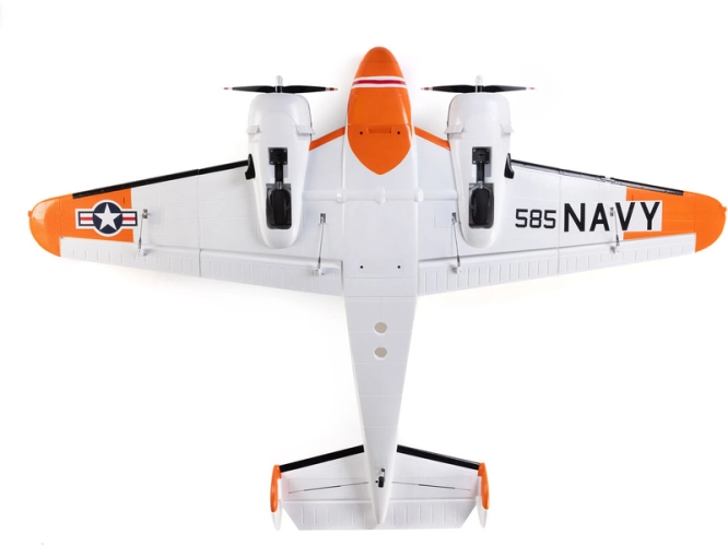 Detailně provedená polomaketa známého amerického letounu Beechcraft D18, ve zbarvení amerického námořnictva (RC-45J), jako plně funkční RC model E-flite o rozpětí 1.5 m. Jedná se o jeden z uživatelsky nejpřívětivějších a nejsnadněji létajících RC modelů této ikony letectví, který je nabitý funkcemi. Dva protiběžné motory v kombinaci s regulátorem Spektrum s možností napájení 3S - 4S LiPo 3200–5000 mAh poskytují nadmíru výkonu pro běžné i sportovní létání. K výborné ovladatelnosti přispívá také dvojitá směrovka a diferenciace tahu motorů. Plná výbava je podpořena funkčními vztlakovými klapkami pro start a přistání a elektrickým zatahovacím podvozkem s odolnými kovovými komponenty. Pro dobrou orientaci a úžasný vzhled je instalováno LED osvětlení.