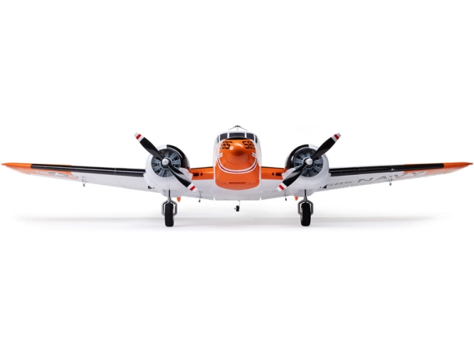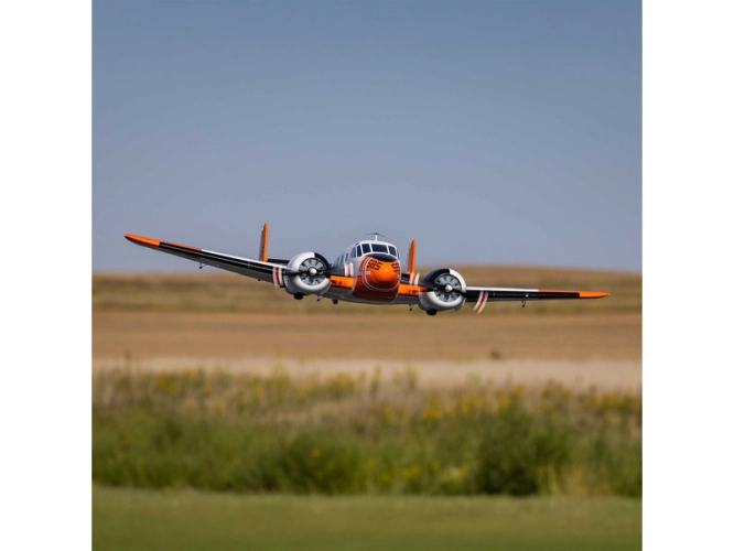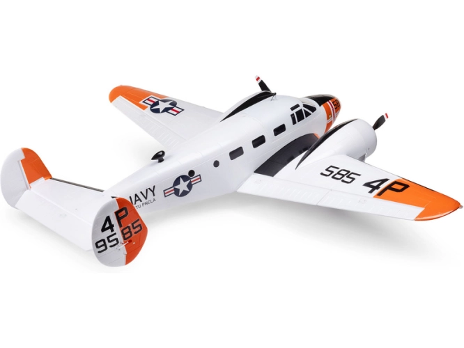 Detailně provedená polomaketa známého amerického letounu Beechcraft D18, ve zbarvení amerického námořnictva (RC-45J), jako plně funkční RC model E-flite o rozpětí 1.5 m. Jedná se o jeden z uživatelsky nejpřívětivějších a nejsnadněji létajících RC modelů této ikony letectví, který je nabitý funkcemi. Dva protiběžné motory v kombinaci s regulátorem Spektrum s možností napájení 3S - 4S LiPo 3200–5000 mAh poskytují nadmíru výkonu pro běžné i sportovní létání. K výborné ovladatelnosti přispívá také dvojitá směrovka. Plná výbava je podpořena funkčními vztlakovými klapkami pro start a přistání a elektrickým zatahovacím podvozkem s odolnými kovovými komponenty. Pro dobrou orientaci a úžasný vzhled je instalováno LED osvětlení.