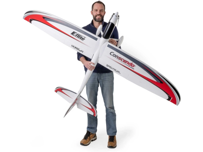 RC model E-flite Conscendo 2.0 m navazuje na mimořádně úspěšné modely Conscendo Evolution 1.5 m a Conscendo 0.8m, které si rychle získaly popularitu mezi sportovními piloty i milovníky větroňů. Nový větší model zachovává výbornou kombinaci univerzálních letových vlastností s možností plynulého plachtění, sportovního létání, vysokorychlostních průletů a provádění akrobatických kousků. Zároveň RC model nabízí ještě vyšší výkon, více funkcí a širší možnosti použití. Díky střídavému motoru se sklopnou vrtulí, regulátoru 70A a možnosti napájení 4-6S LiPo 3200-5000mAh si mohou mírně pokročilí a pokročilí piloti užít jak dlouhé klidné lety, tak maximální výkon, rychlost a téměř neomezené vertikální stoupání. Křídlo je vybaveno vztlakovými klapkami, které se mohou pohybovat oběma směry, což umožňuje nastavení flaperonů, spoileronů a brzdného režimu Crow (křidélka ↑, klapky ↓) pro strmější klesání a přesné krátké přistání.