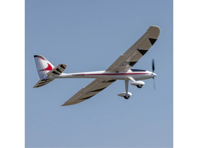 RC model E-flite Conscendo 2.0 m navazuje na mimořádně úspěšné modely Conscendo Evolution 1.5 m a Conscendo 0.8m, které si rychle získaly popularitu mezi sportovními piloty i milovníky větroňů. Nový větší model zachovává výbornou kombinaci univerzálních letových vlastností s možností plynulého plachtění, sportovního létání, vysokorychlostních průletů a provádění akrobatických kousků. Zároveň RC model nabízí ještě vyšší výkon, více funkcí a širší možnosti použití. Díky střídavému motoru se sklopnou vrtulí, regulátoru 70A a možnosti napájení 4-6S LiPo 3200-5000mAh si mohou pokročilí piloti užít jak dlouhé klidné lety, tak maximální výkon, rychlost a téměř neomezené vertikální stoupání. Křídlo je vybaveno vztlakovými klapkami, které se mohou pohybovat oběma směry, což umožňuje nastavení flaperonů, spoileronů a brzdného režimu Crow (křidélka ↑, klapky ↓) pro strmější klesání a přesné krátké přistání.