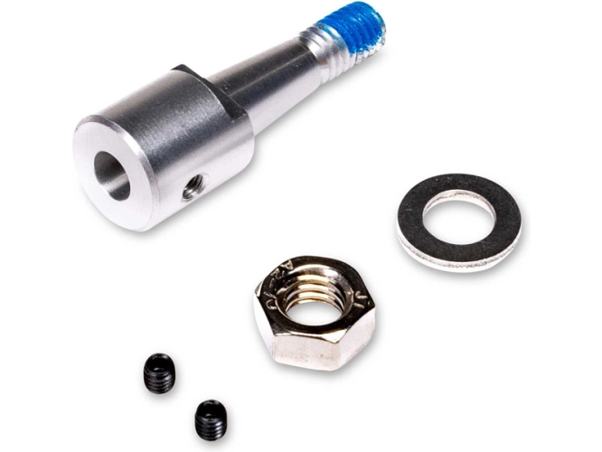 Náhradní díl pro RC model letadla E-flite Habu XS 80: hřídel s maticí dmychadla 80mm. Obsahuje: 1x 6mm kuželová hřídel rotoru, 1x podložka 6x12mm, 1x šestihranná matice 10mm, 2x stavěcí šroub 3x3mm.