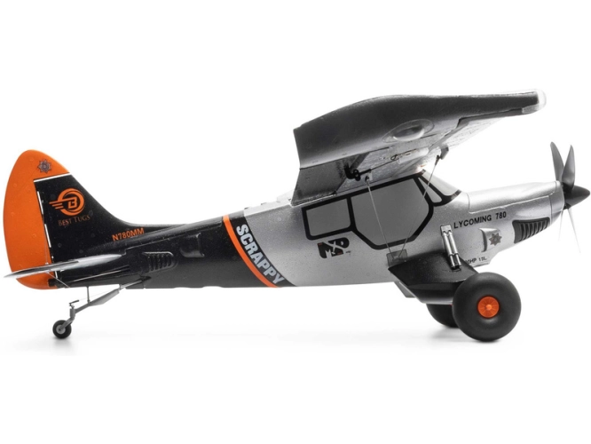 RC model letadla E-flite Micro Scrappy s rozpětím 0.8m je licencovanou replikou letounu známého pilota a konstruktéra Mike Pateyho. Stejně jako originál i model obsahuje vlastnosti STOL (vzlet a přistání na krátké dráze), odpružený podvozek s velkými měkkými pneumatikami ve stylu Tundra, vztlakové klapky, řiditelnou ostruhu a atraktivní LED osvětlení. Výkonný střídavý motor se speciální 4listou vrtulí umožňuje napájení 3S nebo 4S LiPo akumulátorem. To zajišťuje pohodové i sportovnější akrobatické létání pro mírně pokročilé a pokročilé piloty. Tato verze BNF Basic je vybavena přijímačem Spektrum s vylepšenou technologií AS3X+, která ještě lépe stabilizuje let za větru a v turbulenci, a také volitelným systémem SAFE Select pro snadnější a bezpečnější ovládání.