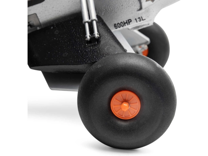 Nadrozměrné pneumatiky ve stylu tundra na hlavním drátěném podvozku výborně absorbují nerovnosti. Umožňují pojíždění, vzlet a přistání na různých površích, které většina modelů této velikosti nezvládne – od travnatých povrchů, které se nacházejí v mnoha parcích a na sportovních hřištích, až po štěrkové cesty a zpevněné povrchy.