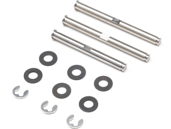 Náhradní díl pro RC model letadla Airbus A320neo 1.5m: osy kol. 2x pro hlavní podvozek. 1x pro příďový. Včetně podložek a segrovek (E-klipů).