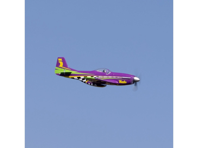 UMX P-51D Voodoo je jeden z nejrychlejších modelů UMX a s baterií 3S LiPo 300 mAh má takřka neomezený vertikální výkon. Pro běžné létaní můžete použít baterii 2S LiPo. Instalován je střídavý motor typu outrunner BL200 2150ot/V.