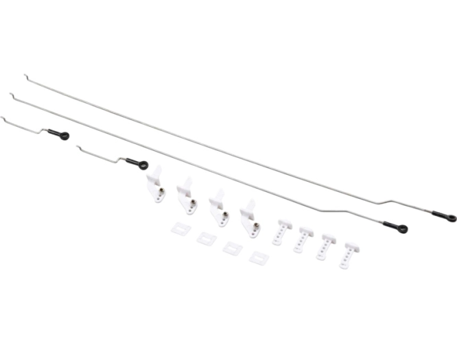 Náhradní díl pro RC model letadla E-flite UMX Eratix 450mm: sada táhel výškovky, směrovky a křidélek. Včetně držáků a pák.