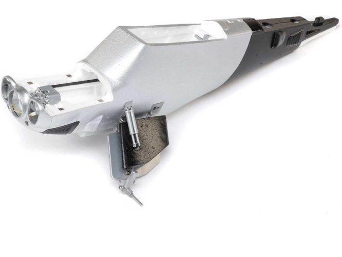 Náhradní díl pro RC model letadla E-flite Micro Scrappy 800: trup s podvozkem. Včetně držáku motoru, držáků serv a instalovaných magnetů krytu.