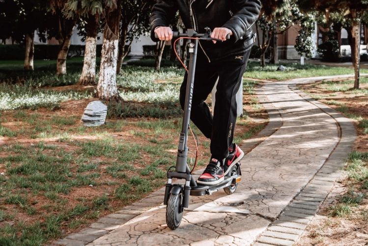 Koloběžka je vybavena bezdušovými pneumatikami, které dobře tlumí drobné nerovnosti a přispívají ke stabilnímu pohybu. Díky odpružené přední vidlici a robustní konstrukci zajišťuje pohodlnou jízdu i na méně kvalitních asfaltových cestách a přehledný displeji nabízí operativní informace o jízdě a stavu koloběžky.