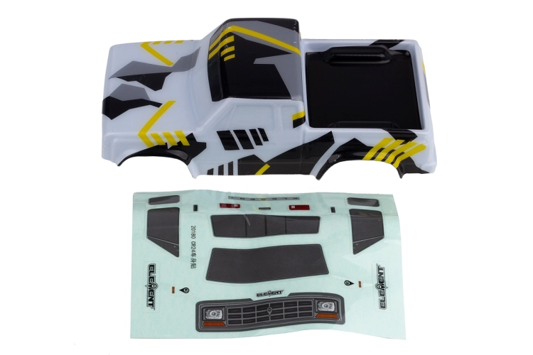 Bílá lexanová karoserie včetně přiložených samolepek.