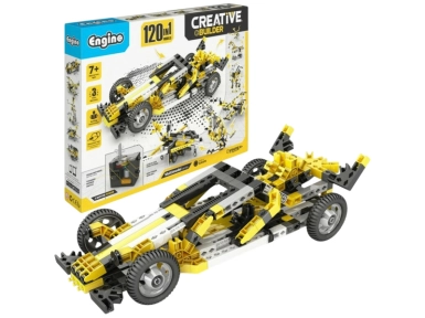 Engino Creative Builder 120 modelů + motor, je největší sadou Engino této řady. Obsahuje elektromotor pro rozpohybování modelů. Lez postavit 120 modelů všech témat pohybujících se věcí jako letadel, motocyklů, aut, stavebních strojů a dokonce i roztomilých zvířat. Tvé fantazii se nebudou klást žádné meze a můžeš vytvořit modely letadel a stíhaček, několik formulí a dragsterů, velká rýpadla nebo Jeepy a dokonce i kočárky či čtyřkolky. Zajímá tě svět zvířat? Sestav si draka nebo tarantuli. Zajímáš se o mechaniku a jak věci fungují? Pak zde najdeš houpačky, katapulty, kolotoče i ruské kolo. Doporučený věk 7+.