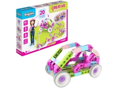 Stavebnice Engino Creative Builder Designer 20 modelů, určená pro dívky, která je inspiruje ke kreativnímu hraní a zábavnou formou budou objevovat úžasný svět vědy, techniky a inženýrství. Sestavte 20 unikátních modelů pomocí návodu, jako například koloběžku nebo ptáčka. Věk 6+.
