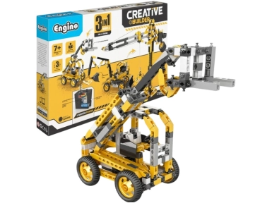 Engino Creative Builder vysokozdvižný nakladač 3-v-1 je stavebnice, která rozvíjí kreativitu dětí. Mladí konstruktéři stavebních strojů si mohou postavit propracovaný vysokozdvižný vozík, bagr nebo jeřáb a rozpohybovat modely pomocí obsaženého elektromotoru. Počet dílů v balení: 316. Věk 7+.