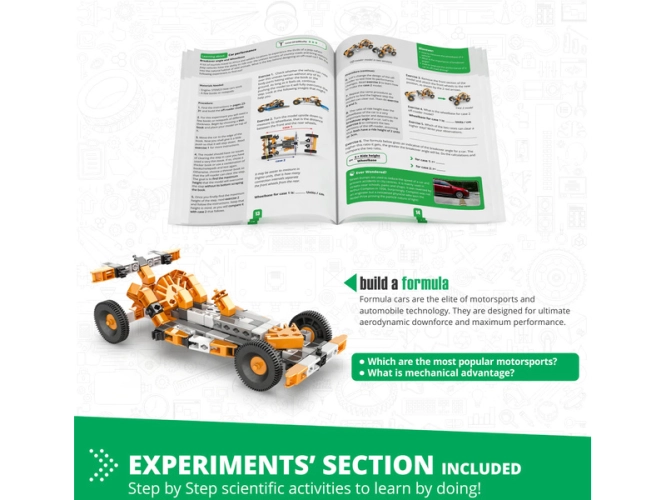 Děti se učí se STEM a během stavění modelů a experimentování se dozví odpovědi na otázky, jako kdo byl vynálezcem auta, jaké jsou základní části auta a jak fungují, jak důležité jsou bezpečnost a pohodlí pro cestující, které fyzikální zákony potřebují automobiloví inženýři znát, které jsou nejpopulárnější motorsporty, jak funguje motor, jaká je role převodovky, jak design ovlivňuje výkon, proč malá auta pomáhají v dopravních zácpách, co jsou airbagy a protiblokovací brzdy a další.