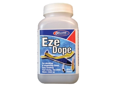 EZE-Dope od Deluxe Materials je jednosložkový vypínací lak na potahovací papír. Na potahovací papír se štětcem nanese rovnoměrnou vrstva, která se pak vysuší fénem na vlasy. Tím dojde k vypnutí papírového potahu, po vytvrdnutí je lak odolný vůči palivu. Výtěžnost přibližně 5 m².