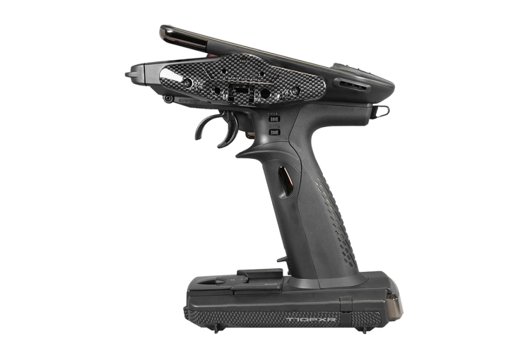 Vysílač T10PXR v klasickém volantovém designu s rukojetí dokonale padnoucí do ruky je vybaven volantovým ovladačem řízení, spouští pro ovládání plynu, osmi tlačítkovými přepínači, jedním otočným ovladačem kombinovaným s tlačítkovým přepínačem a šesti digitálními trimy (4 okolo volantu, 2 na rukojeti). Ovládací prvky jsou uspořádány (popř. zdvojeny) pro ovládání praváky i leváky (s volantem přemístitelným na levou nebo pravou stranu). Volant i spoušť plynu mají bohaté možnosti mechanického nastavení pro dokonalé přizpůsobení vašim rukám a stylu řízení. K programování slouží dvojice tlačítek a velký podsvícený barevný dotykový LCD displej zajišťující snadnou orientaci v intuitivním menu. T10PXR má paměť pro 40 modelů neomezeně rozšiřitelnou pomocí mikroSD karty a širokou škálu pokročilých programových funkcí pro běžné i speciální modely aut - např. nezávislé řízení a pohon (se 2 regulátory) předních i zadních kol pro crawlery, dvojokruhové brzdy pro velké modely 1:5, gyro pro drifting, ABS, kontrola trakce, mix pro tanky apod. Můžete přepínat až 4 jízdní režimy s odlišným nastavením mnoha programových funkcí zaručující ideální přizpůsobení nastavení auta podmínkám na různých místech závodní trati nebo měnícím se povětrnostním podmínkám atd.