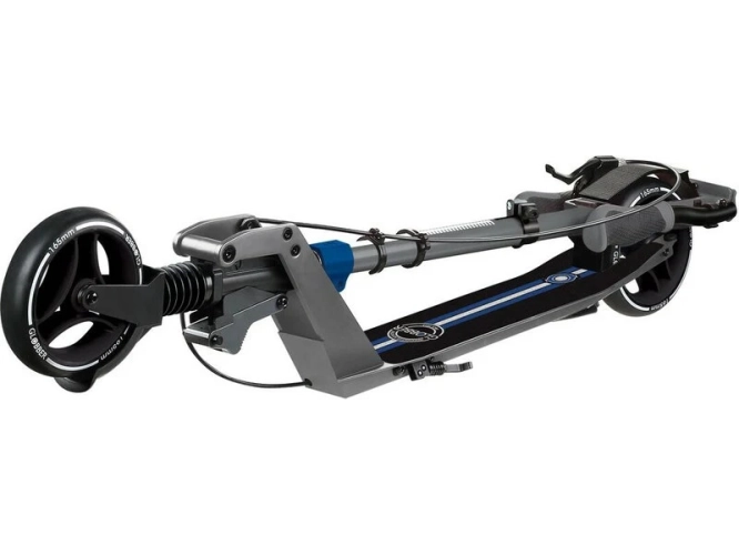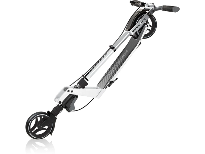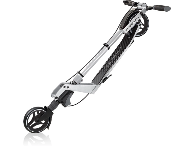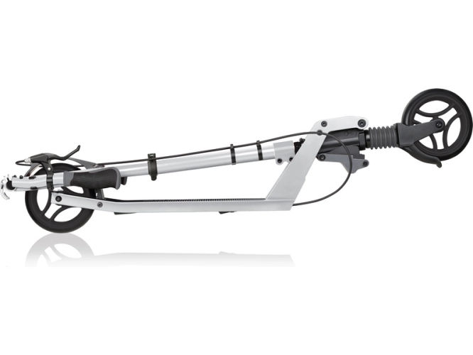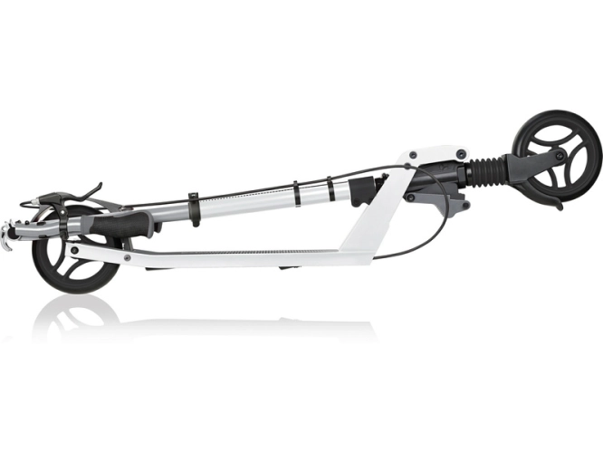 Koloběžka je vybavena unikátním skládacím systémem. Patentovaný píst usnadní a urychlí skládání. Stačí jen "kopnout" do tlačítka a koloběžka je během jedné sekundy složena. Koloběžka se tak dostane do velmi kompaktního tvaru, složenou ji můžete snadno převážet, uskladnit nebo vést za sebou.