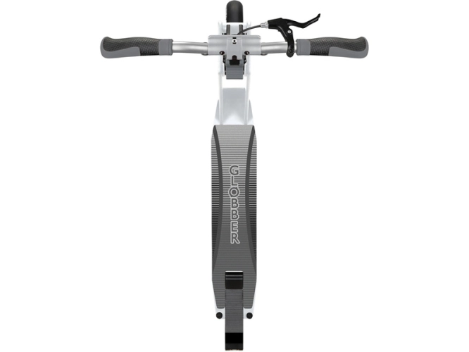 Koloběžka je vybavena přední ruční brzdou a zadní nášlapnou brzdou. Zadní brzda je tvořena ocelovým pásem, proto je efektivní a bezpečná.