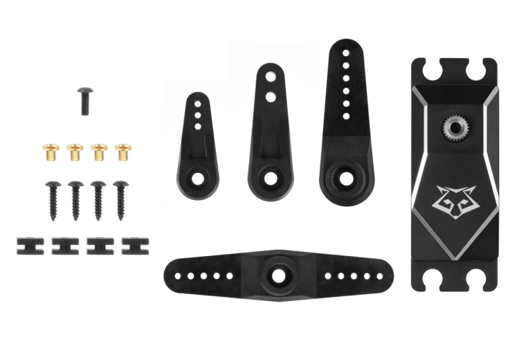 Silné a extrémně rychlé úzkopásmové digitální programovatelné standardní servo 83g se střídavým (brushless) motorem s titanovými/ocelovými převody a výstupní hřídelí uloženou na třech kuličkových ložiscích pro použití jako servo vyrovnávacího rotoru v RC vrtulnících 500–800. Pro dokonalé chlazení i při vysokém zatížení je servo uloženo v hliníkové krabičce.