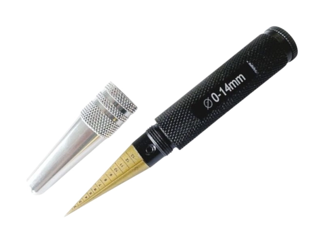 Ruční nástroj pro vykružování otvorů do průměru až 14 mm. Řezná část se dvěma břity a stupnicí postupně ubírá po obvodu materiál a kalibruje otvor. Hliníková rukojeť s protiskluzovým křížovým vroubkováním o délce 82 mm a průměru 18 mm má plastovou otočnou zadní opěrku. Výkružník má šroubovací ochranný kryt.