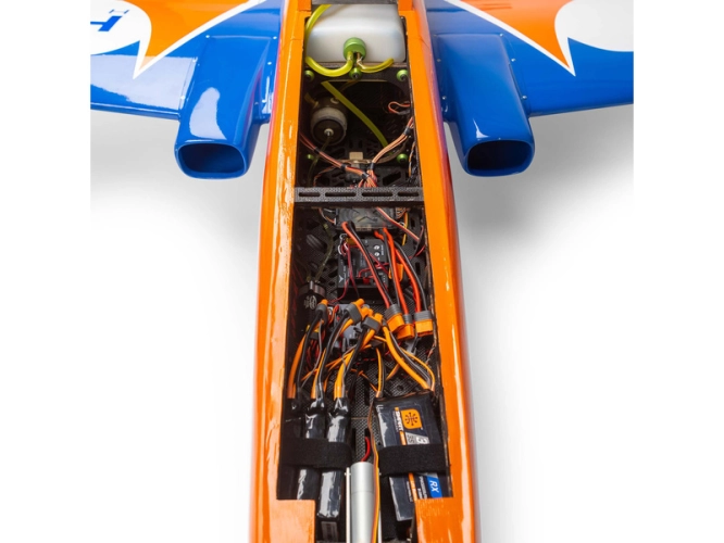 Dvoudílné křídlo usnadňuje přepravu a montáž tohoto velkého modelu s minimálními problémy, takže můžete být po příjezdu na letiště, rychle ve vzduchu. Kryty na trupu jsou dost velké pro snadný přístup k životně důležitým součástem, jako je elektronika a baterie.