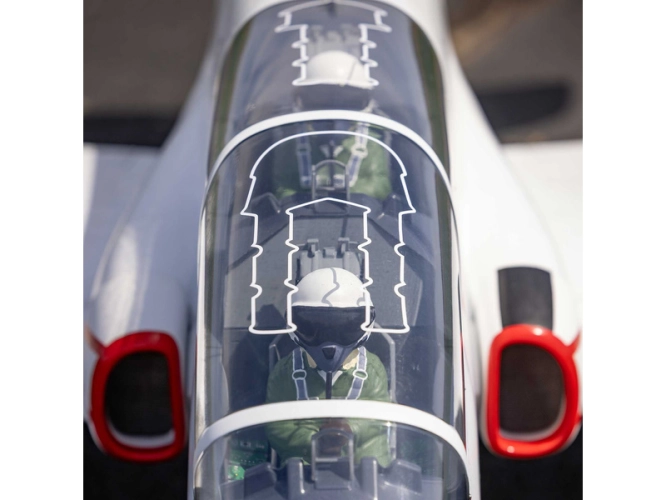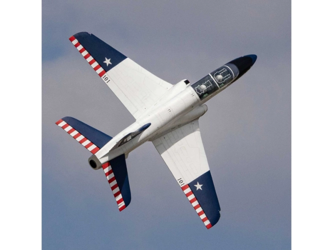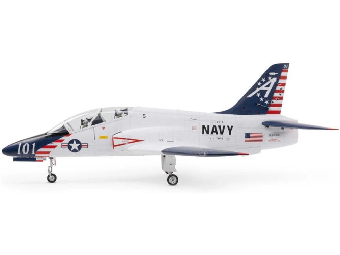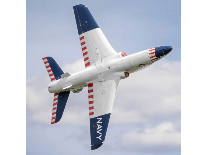 Od svého uvedení do služby na konci 70. let 20. století vycvičil letoun BAE Systems Hawk a jeho varianta pro americké námořnictvo T-45 Goshawk, generace vojenských pilotů po celém světě. Tento model, kombinuje autentické linie s lehkým a odolným drakem z balzy a překližky vyztužené uhlíkovými vlákny. Součástí balení jsou veškeré ovládací prvky, včetně kompozitní palivové nádrže o objemu 5,5 l s hliníkovými magnetickými plnicími a odvzdušňovacími armaturami, dvoustěnné nerezové koncovky výfuku a montážní materiál. Velké horní poklopy umožňují rychlý a snadný přístup k turbíně, palivovému systému a elektronice. Fanoušci ocení tištěný továrně aplikovaný potah s detaily panelů, poklopů a nýtů. Detailně propracovaný kokpit s čirými okny ukrývá figurky pilotů, tvarovaná sedadla a 3D přístrojovou desku.