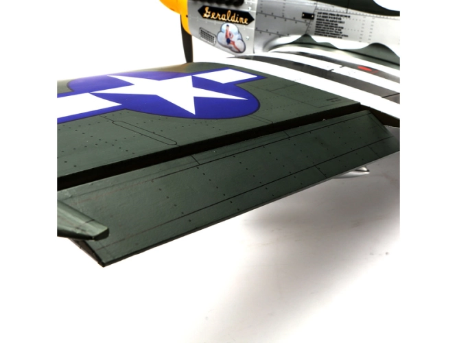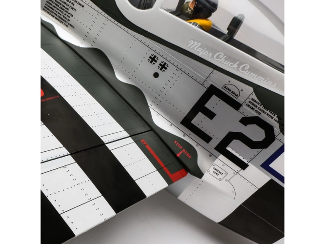 P - 51 Mustang 60 ARF je celodřevěné konstrukce z balzy a překližky s použitím těch nejkvalitnějších materiálů s důsledným důrazem na detail. Má lehkou a současně robustní celodřevěnou konstrukci, která zajišťuje modelu dlouhou životnost i vynikající letové vlastnosti. Kryt motoru je laminátový s hotovým zbarvením.