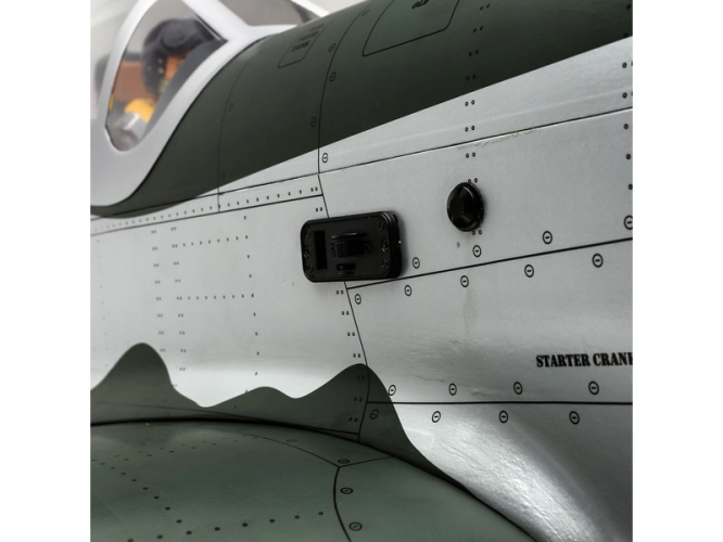 Pevná otočná ostruha s kolečkem má v případě potřeby přístup krytem v zadní části. Každé křidélko má vlastní servo, stejně jako vztlakové klapky. Pevný podvozek je celokovový odpružený. Důraz byl kladen na maketové provedení kol a podvozkových noh, stejně jako na kužel s tvarem odpovídajícím svému velkému vzoru stejně jako provedení palubních zbraní.