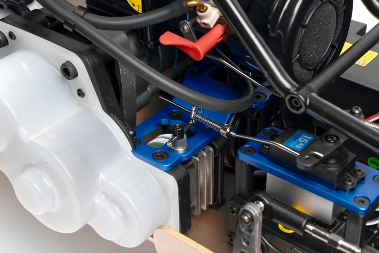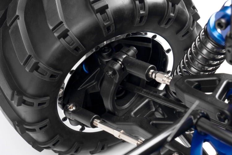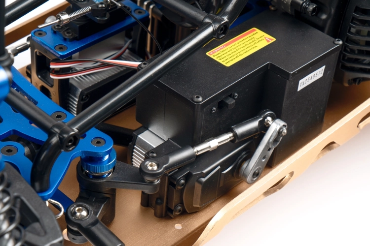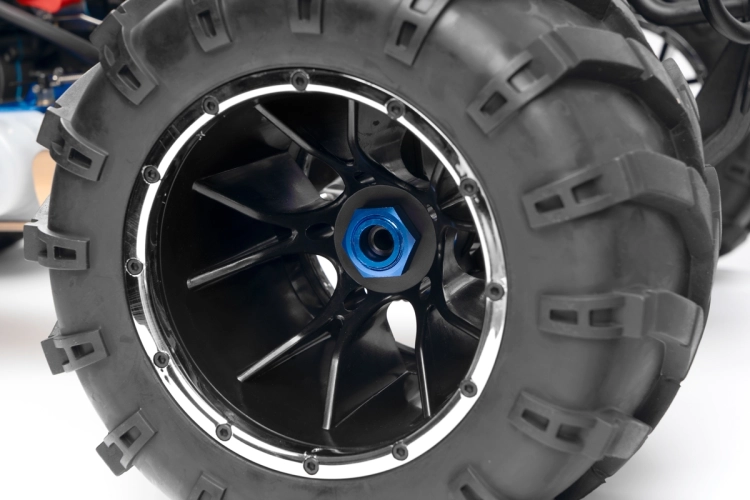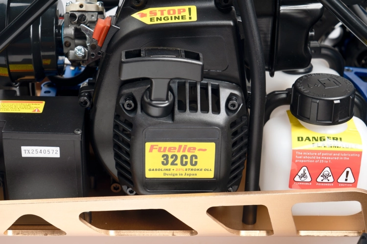 Provedení podvozku je velice podobné modelům menších měřítek, jen konstrukce a použité materiály jsou podřízeny tomu, aby skoro 17 kg model odolal i v těch nejnáročnějších podmínkách. Motor o obsahu 32ccm pohání přes odstředivou spojku pomocí rozvodovky a ocelového stálého převodu všechna čtyři kola, což je v této kategorii zcela ojedinělé.