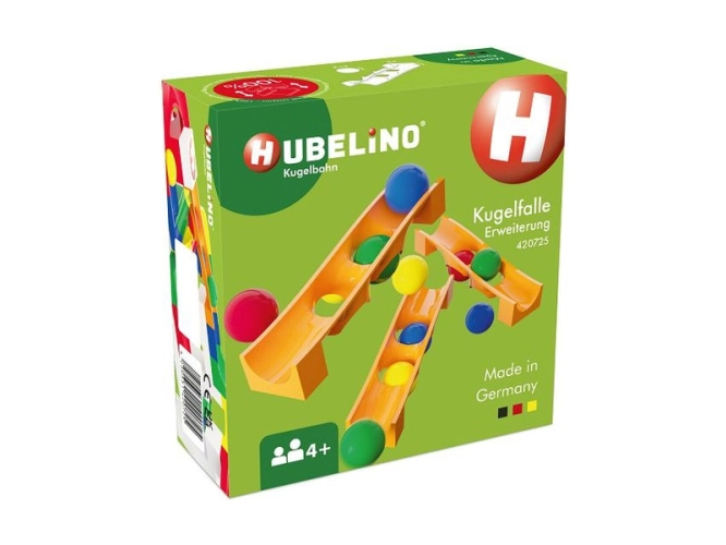 HUBELINO Kuličková dráha - rozšíření past na kuličky 15 dílků. Rozšiřte svoji kuličkovou dráhu o 3 pasti a 12 kuliček. První dvě kuličky zapadnou, další kuličky pak přeskakují přes ně. Uvolněte uvězněné kuličky tak, že je zvednete nebo je zatlačíte na dráhu pod nimi. Tento set vám pomůže vytvořit ještě větší dráhu. Vhodné pro děti od 4 let.