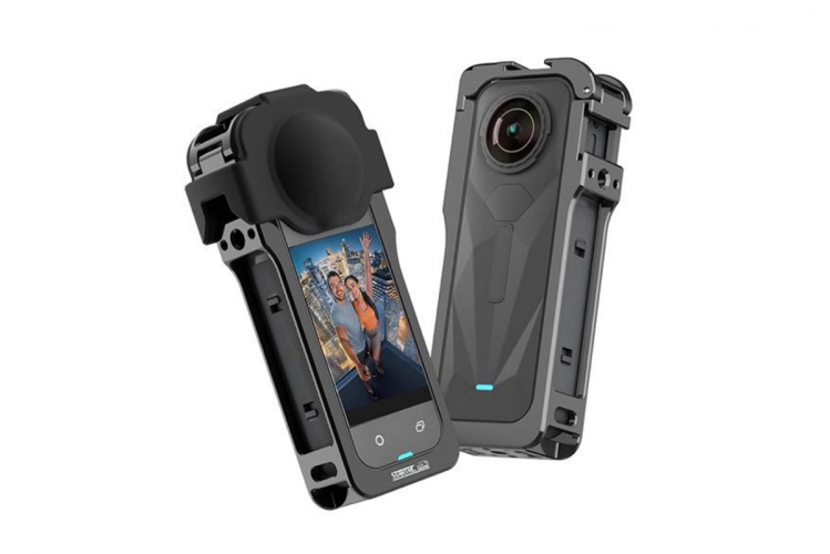 Startrc vertikální a horizontální rám s krytkou čočky pro Insta360 X5. Vyroben z lehké a pevné hliníkové slitiny a silikonu pro ochranu a stabilitu kamery. Váží pouze 50 gramů a má rozměry 135,5 x 62,35 x 23,5 mm. Tento multifunkční rám umožňuje snadné přepínání mezi vertikálním a horizontálním režimem a zároveň chrání čočku před poškozením díky přiložené krytce. Ideální doplněk pro profesionální natáčení s Insta360 X5.