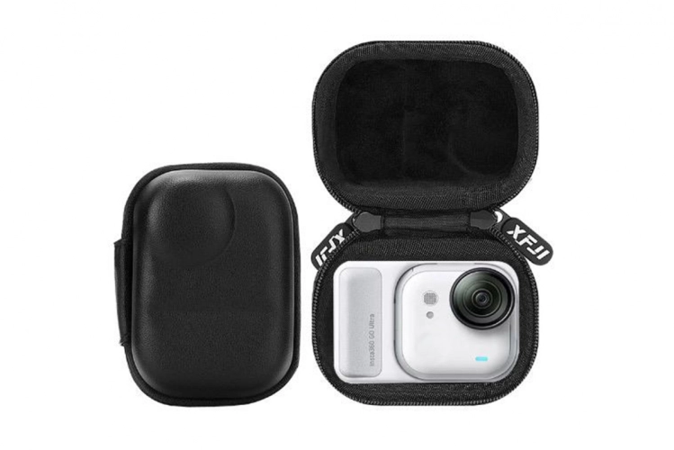 Mini PU pouzdro pro Insta360 GO Ultra v černé barvě poskytuje bezpečné a praktické uložení kamery. Je vyrobeno z odolného PU materiálu a lycry, které chrání zařízení před poškrábáním a drobnými nárazy. Pouzdro váží 43,5 g a jeho rozměry jsou 9 × 6,8 × 5,2 cm, což zajišťuje kompaktnost a snadné přenášení. Ideální doplněk pro ochranu kamery při cestování i skladování.