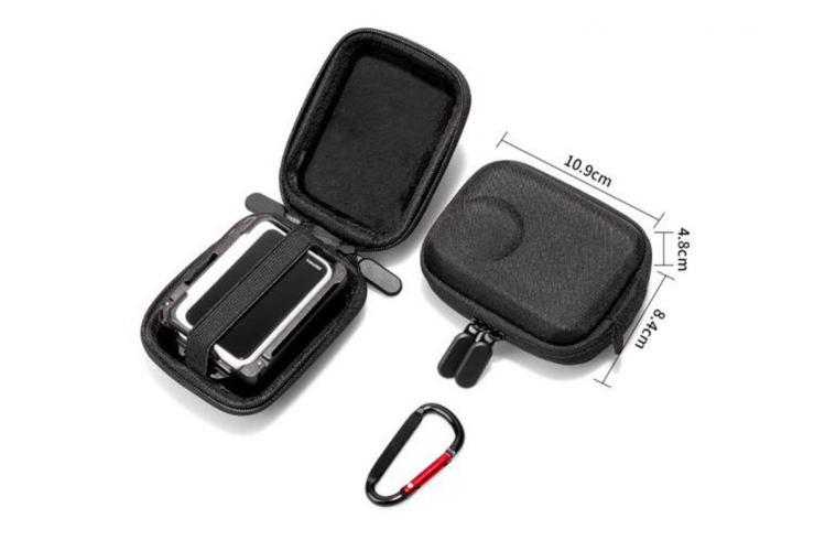 Mini úložné pouzdro pro Insta360 GO Ultra a klec poskytuje spolehlivou ochranu před nárazy, prachem a poškozením. Vyrobené z odolného materiálu EVA, je lehké, kompaktní a snadno přenosné. Černé provedení působí elegantně a profesionálně. Váží pouze 58,8 g a má rozměry 109 × 84 × 48 mm – ideální pro cestování a každodenní použití.